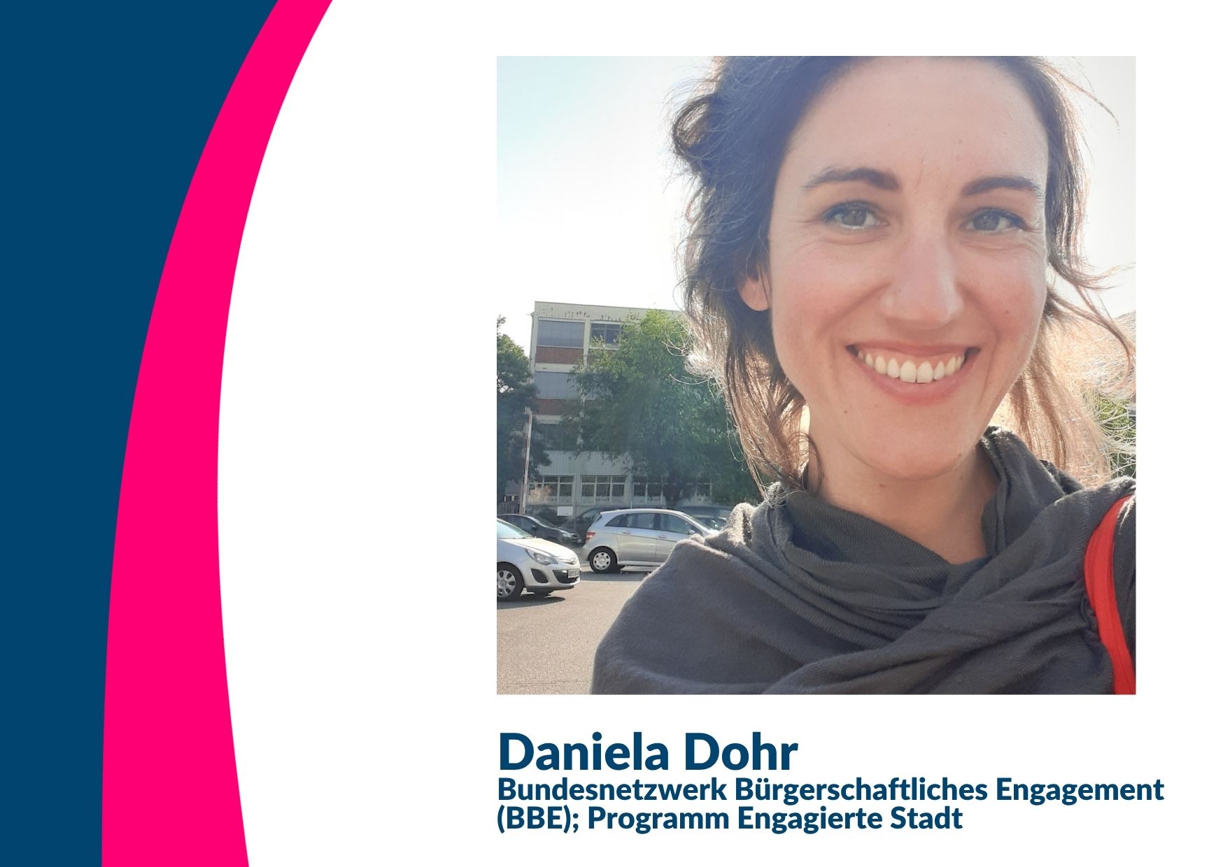 Daniela Dohr (Dipl.-Päd.) bringt vielfältige Erfahrungen aus Forschung, Sozialarbeit und Engagementförderung mit. Heute arbeitet sie im Programmbüro Engagierte Stadt des BBE und fördert dort nachhaltige Engagementstrukturen zwischen Zivilgesellschaft, Politik, Verwaltung, Wirtschaft und Wissenschaft.