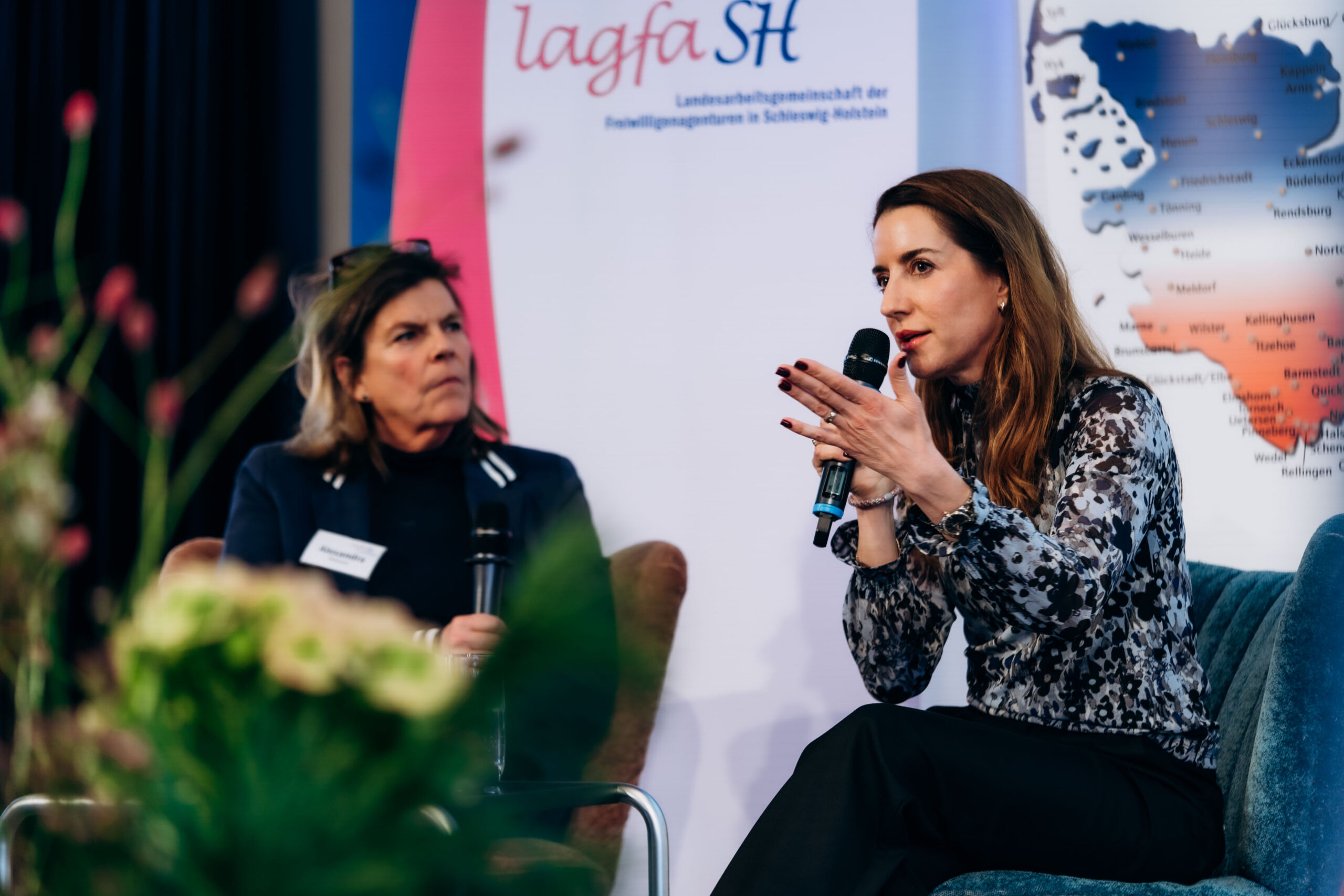 Im Gespräch mit Alexandra Hebestreit, Mitglied der lagfa-Geschäftsführung und Leiterin des netteKieler-Ehrenamtbüros, wies Dr. Anja Langness eindringlich auf das Phänomen von Einsamkeit und seinen sozialen Folgen unter jungen Menschen. hin Die Senior Project Managerin im Bereich Jugend und Next Generation bei der Bertelsmann Stiftung war sich sicher, dass Einsamkeit als Gefahr für die Demokratie immer noch unterschätzt wird. Ihre Handlungsempfehlungen lauten: